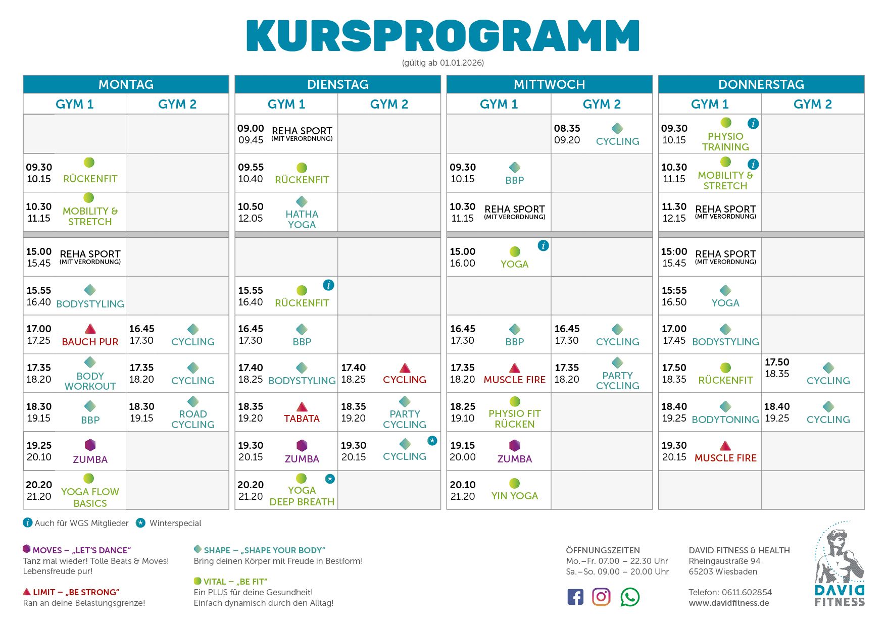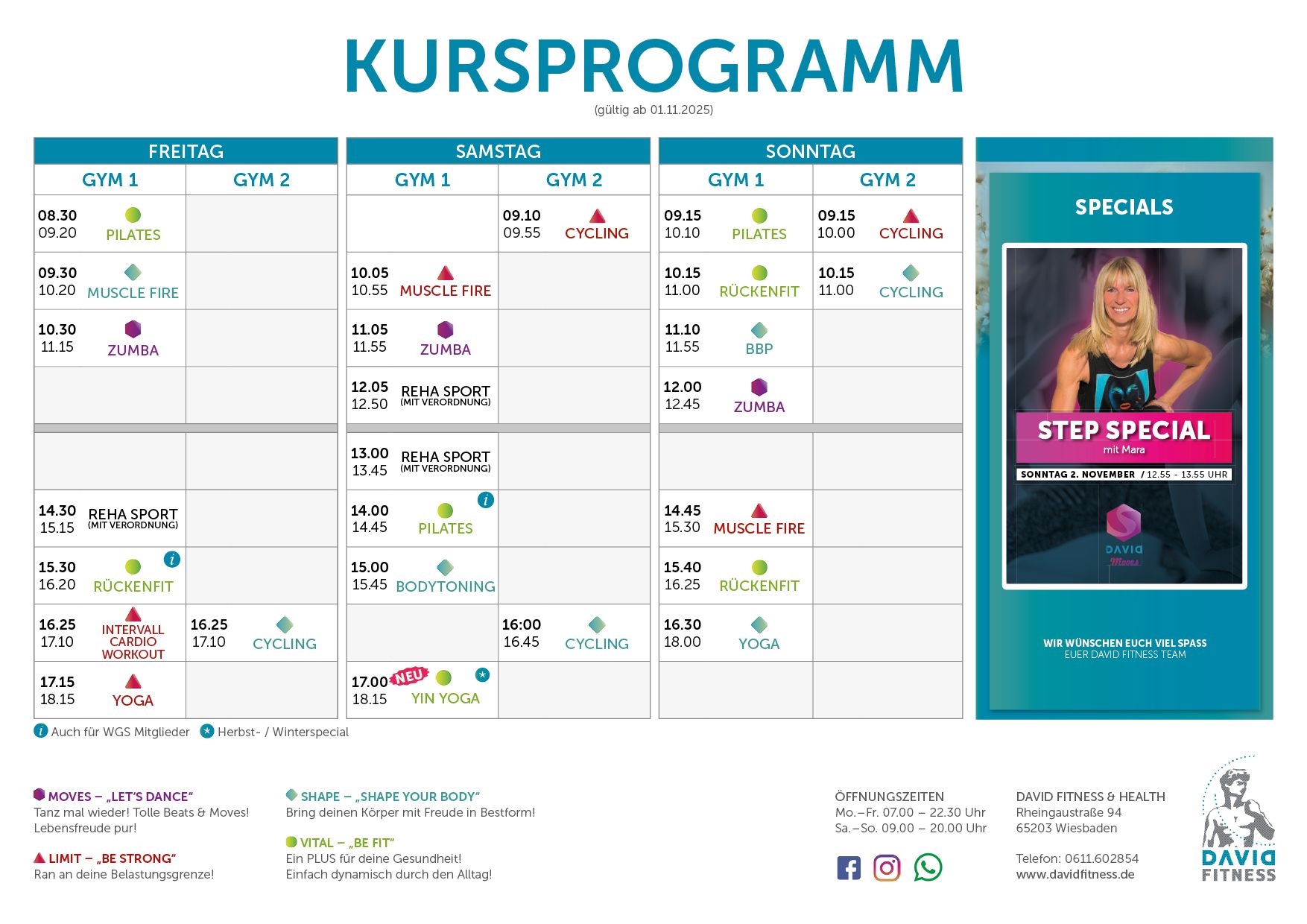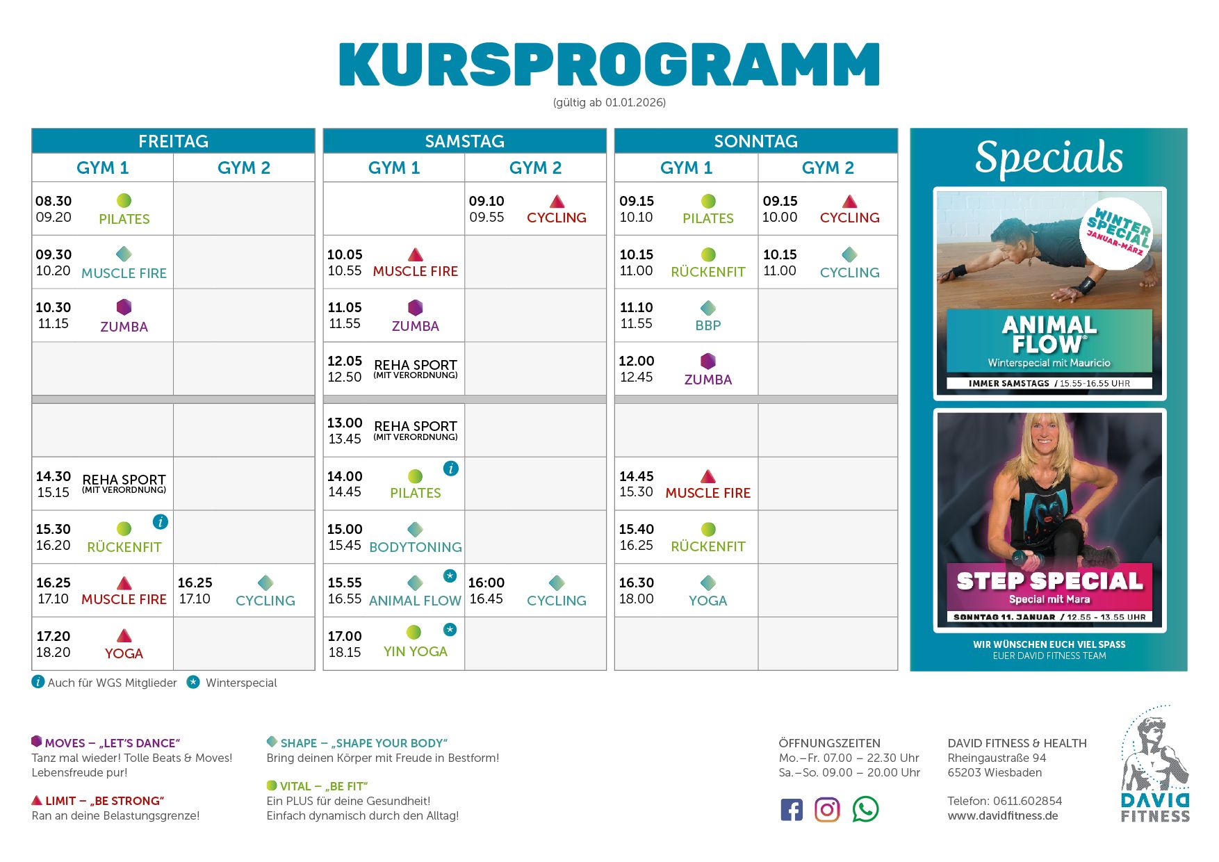 Aktuelle Specials außerhalb des normalen Kursplans und News findet Ihr immer auf Social Media: