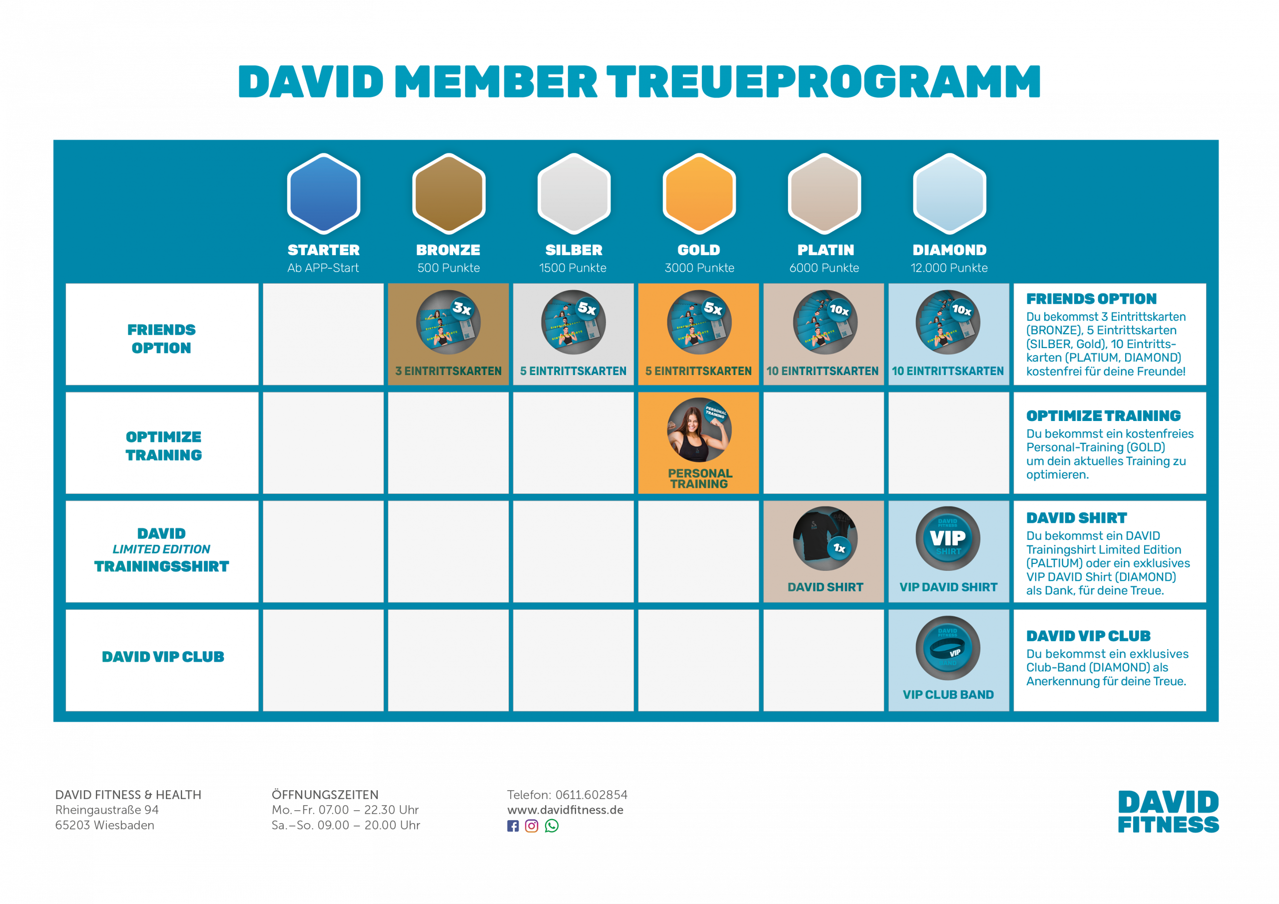 Du bekommst automatisch einmalig 20 Punkte gutgeschrieben, wenn du am DAVID MEMBER-CLUB teilnimmst.